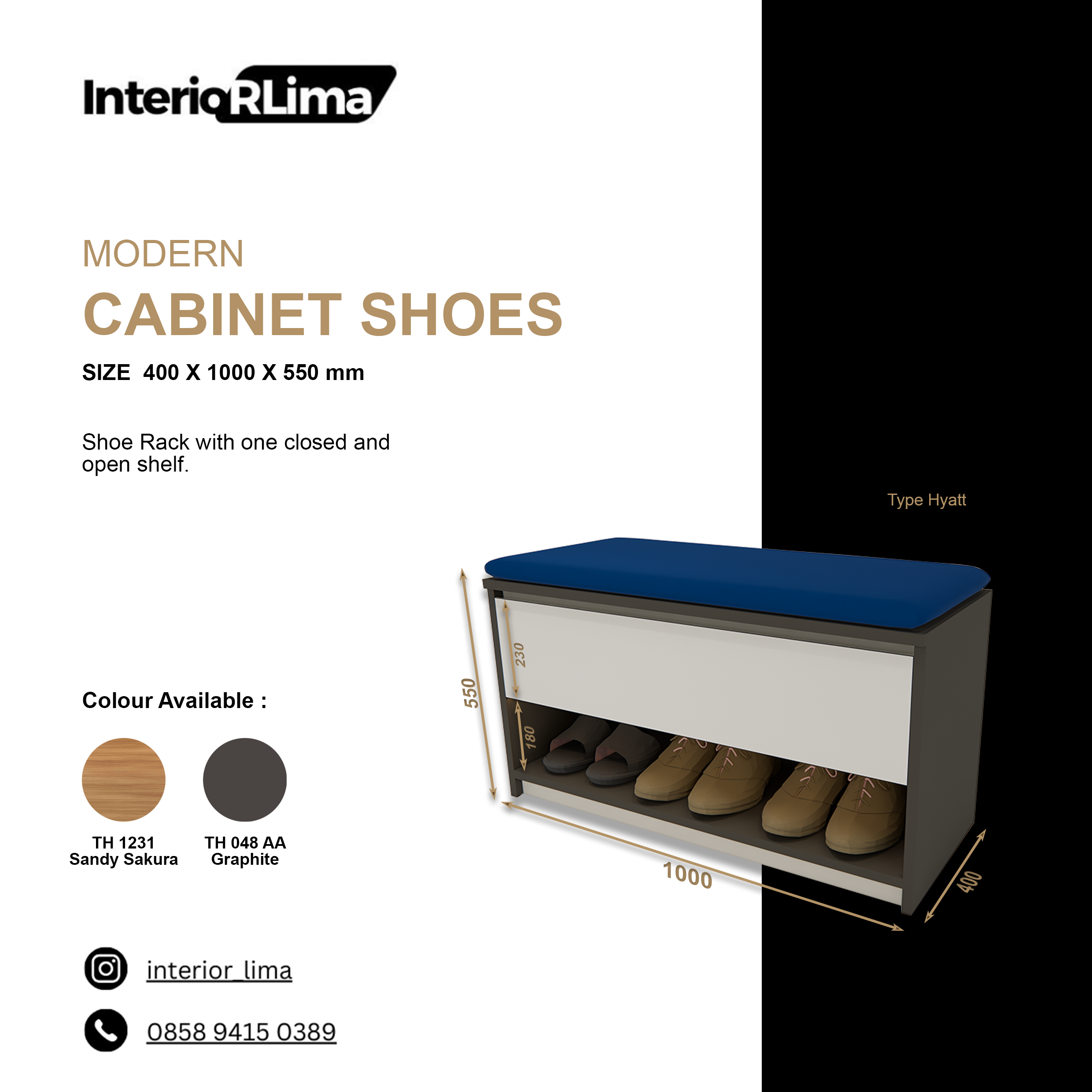 Modern cabinet shoes “Hyatt” si Kabinet sepatu dengan laci tertutup dan rak terbuka didesain khusus buat para milenials dan gen Z yang menyukai kepraktisan